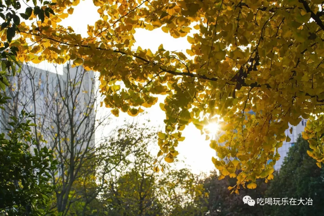 黃色本是秋天的代表,在大冶,秋天印象最深刻的就是公園的銀杏樹。枯黃的銀杏葉鋪滿一地,像獻(xiàn)給大地的華麗禮服,引得無數(shù)大冶攝影愛好者去打卡。