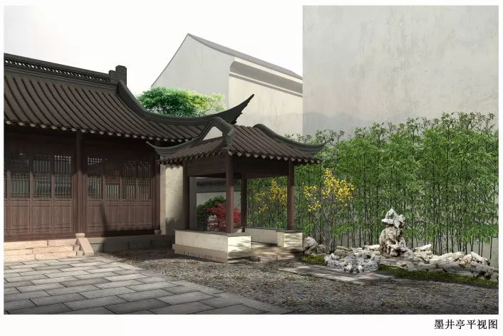 首先對東軸線現(xiàn)有的古建筑進(jìn)行修繕,按照不改變文物原狀的原則,對墨井周邊環(huán)境進(jìn)行整治、進(jìn)行疏浚,恢復(fù)墨井的景觀。在墨井邊上還準(zhǔn)備要復(fù)建一個墨井亭。