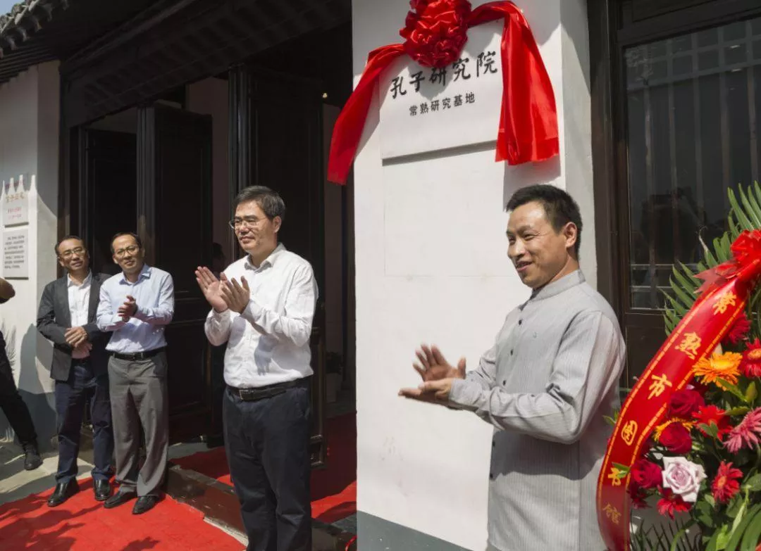 ▲市委副書記、政協(xié)主席韓衛(wèi)兵與孔子研究院學(xué)術(shù)交流部副部長路則權(quán)為“孔子研究院常熟研究基地”揭牌。