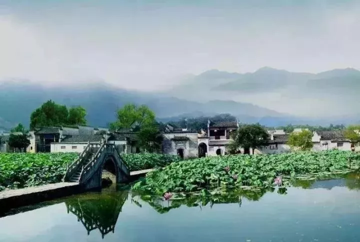 一顆參天古樹在荷塘畔挺拔地鎮(zhèn)住了整座建筑群的氣勢,近處的荷塘美景、遠處連綿起伏的山巒,與呈坎古鎮(zhèn)的馬頭墻、徽派古建筑群交相輝映。