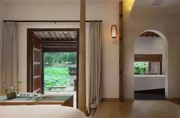 澍德堂共16間客房,其中14間皆是面朝荷塘。這里的客房從名字開始便充滿詩意:拂柳、觀荷、靜思、時雨……客房布置簡約復(fù)古,所有門窗及古建筑房屋構(gòu)架都由當(dāng)?shù)氐睦瞎そ秤H手修復(fù),保留了原汁原味的徽派古建筑的韻味。