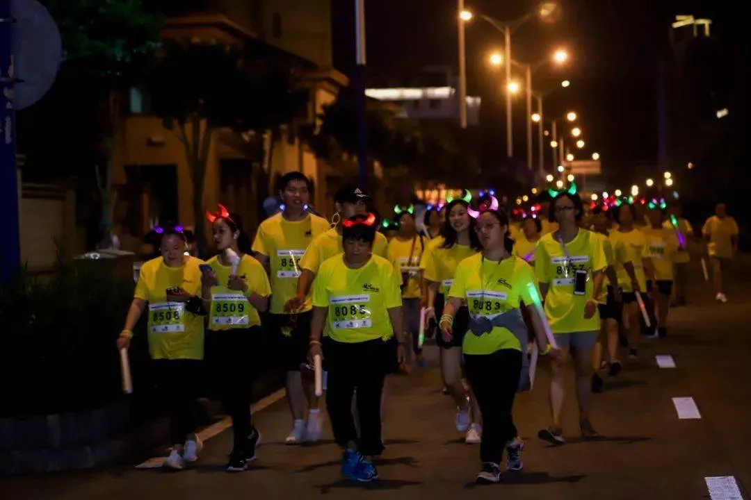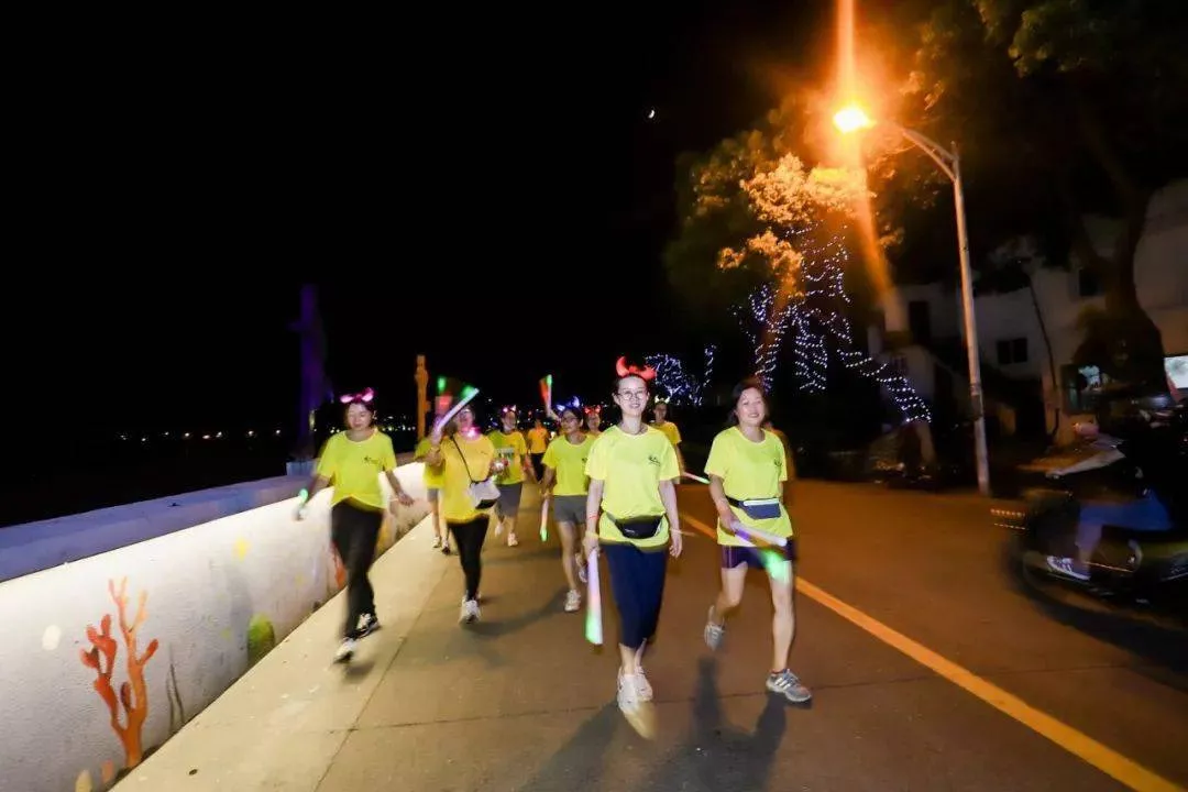 當(dāng)人群熙然而來,當(dāng)參加夜走的盆友們換上活動(dòng)T恤,裝扮好熒光彩繪,在廣場上亮起瑩瑩星光,一場跳耀五光十色的熒光開場秀也蓄勢待發(fā)。 動(dòng)感單車開道,演員們踩著樂點(diǎn),舞動(dòng)熒光,專屬泗礁島的“熒光海”來嘍!