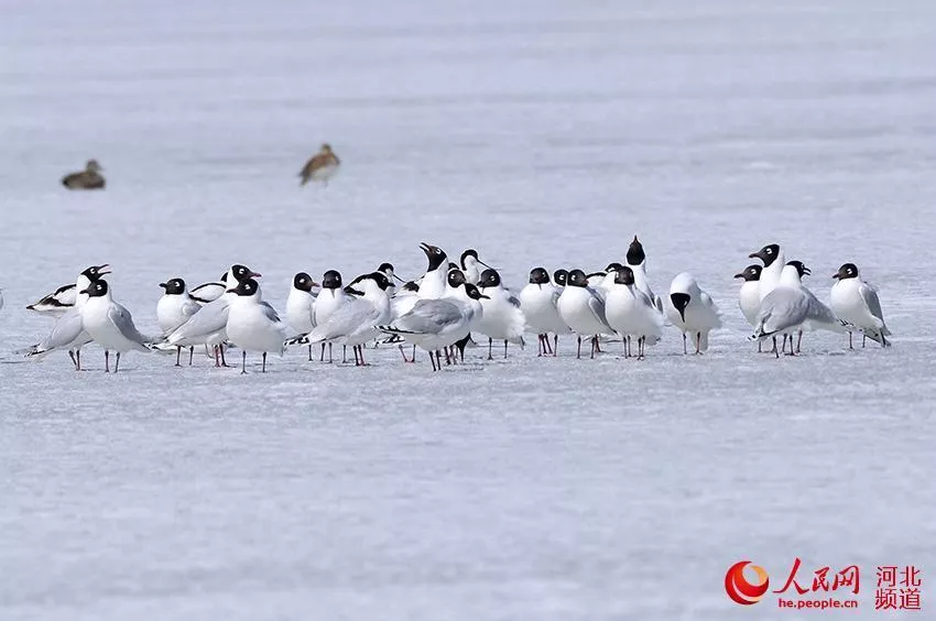 人民網(wǎng)石家莊3月29日電 (袁志廣)春風(fēng)送暖,位于河北省西北角康??h康巴諾爾湖冰面逐步解凍,越來越多的候鳥又飛回到這里。27日,當(dāng)?shù)?a href='/sheyingaihaozhe/' target=_blank>攝影愛好者在康巴諾爾湖發(fā)現(xiàn)了遺鷗的蹤影。20多只遺鷗在湖面嬉戲,聚在一團(tuán),像是遺鷗國的“先頭部隊(duì)”,清亮的鳴叫在安靜的湖面四處回蕩。