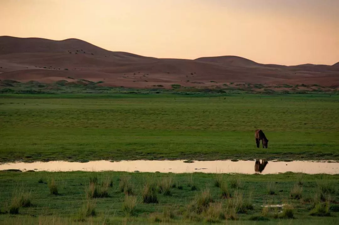 沙丘背著太陽的一面,會(huì)有植物生長(zhǎng),看似干涸的“荒涼”,其實(shí)有自己的小生態(tài)。