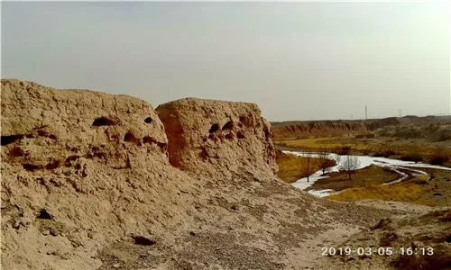 西騸馬城和東騸馬城相距70米。西騸馬城約建于西漢時期,在漢時為屯兵之地。城墻現(xiàn)僅存南85米、西40米的殘墻,城的輪廓大致可辨,東墻中間開城門,城門外有甕城,騸馬城一帶與馬是有很深淵源的,晉元康五年(295)設(shè)骍馬縣,一直到516年,存在221年。骍是赤色馬,今天的紅栗馬和金栗毛馬。骍馬本是西漢居延的一個屯田,晉代在現(xiàn)在騸馬城一帶設(shè)骍馬縣。這里是晉代骍馬縣駐地。這里也被有學(xué)者考證為是延壽縣駐地。