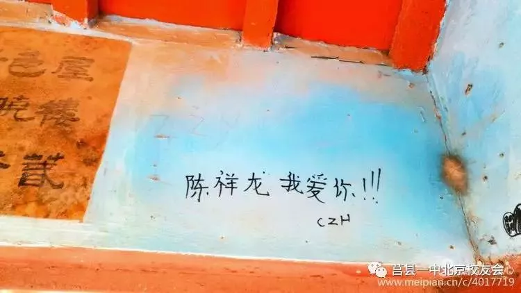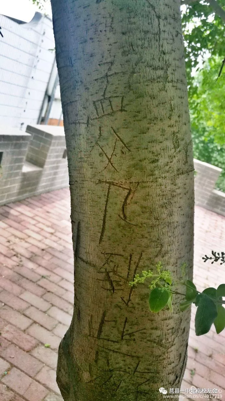 女孩子也夠大膽的,手勁不夠沒法刻樹皮,寫在這里彪炳千秋。