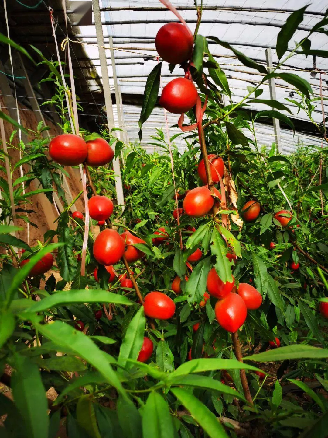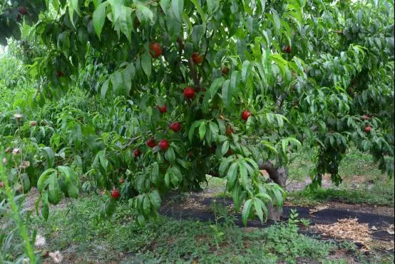 一顆顆紅艷艷的油桃掛滿枝頭,
