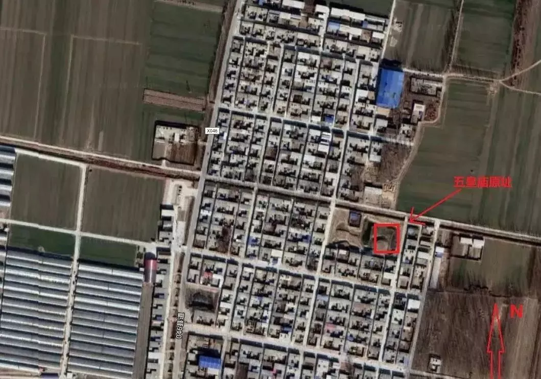 五皇廟完全拆除時,規(guī)模為占地面積約400平米的長方形院落,南北長約30米,東西寬約14米,約等于現(xiàn)后姜村所規(guī)劃的1.4個居民院落的大小。五皇廟院落只有一扇朝西開的廟門,為道教風(fēng)格的磚制拱券門,高約2.2米,寬約1.5米,門檻高于地面,內(nèi)外分有石階數(shù)級。