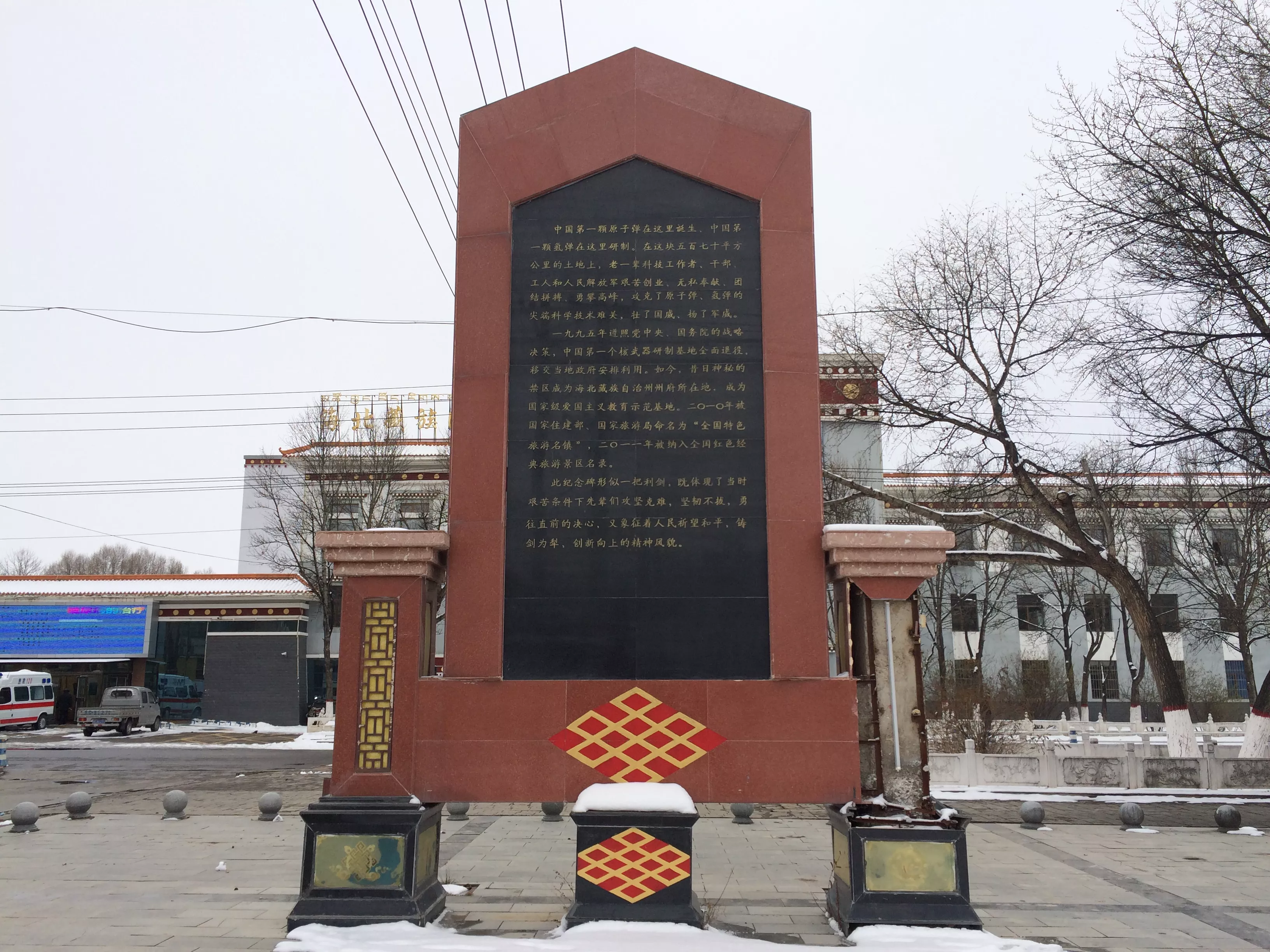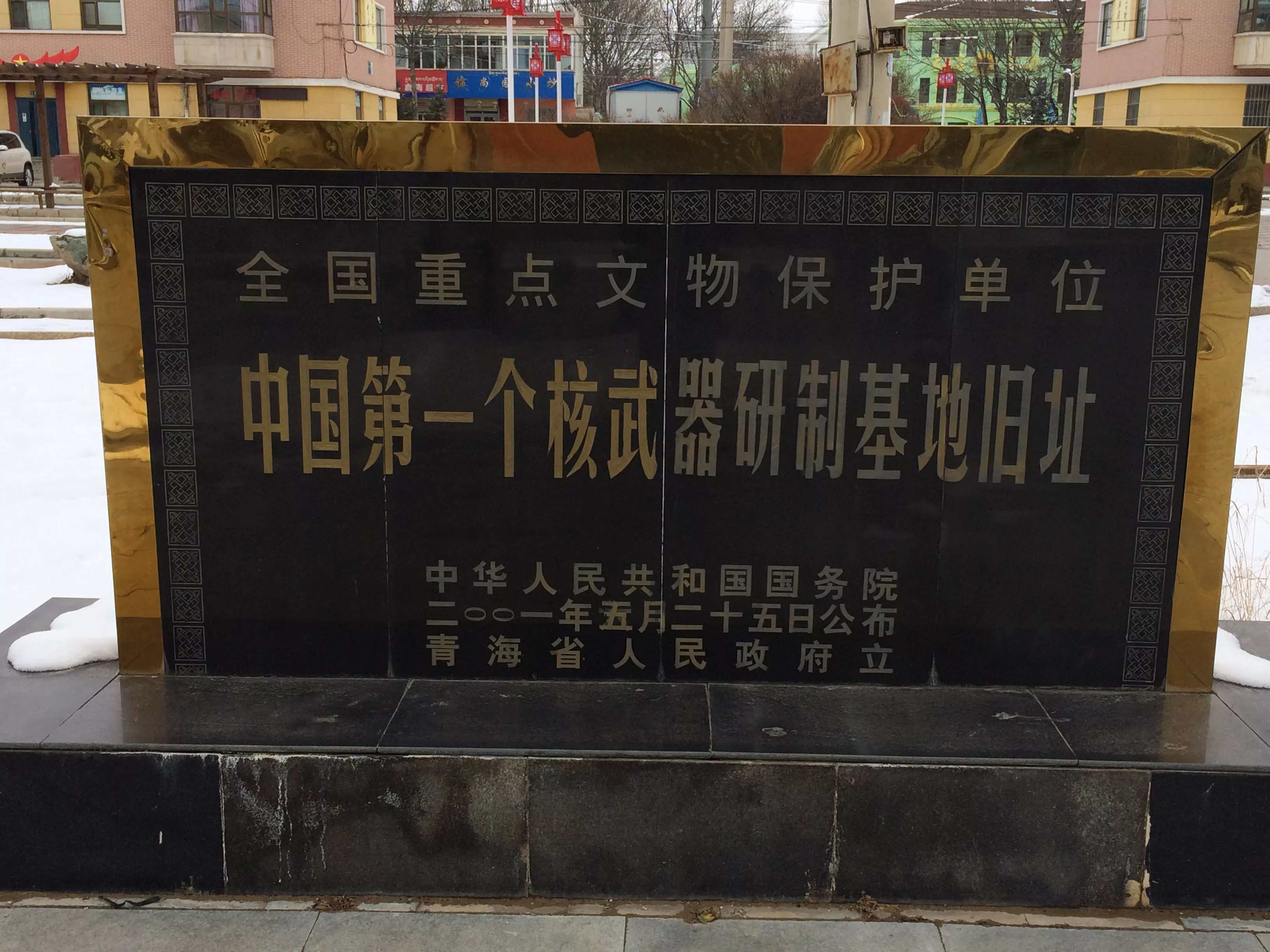 中國原子城,位于青海省海北藏族自治州海晏縣西海鎮(zhèn),這是我國建設(shè)的第一個(gè)核武器基地,也是我國第一顆氫彈和原子彈出生的地方,"原子城"是原"青海221廠"所在地,1995年5月15日退役,后更名為西海鎮(zhèn)。這是中國原子城石碑的背面,上面記載著這里曾經(jīng)發(fā)生過的事情,在這里承載著無數(shù)人畢生的心血。這是原子城紀(jì)念碑前的一塊小石碑,中國第一個(gè)核武器研制基地舊址。1987年,這座封閉了三十多年的軍事禁區(qū)