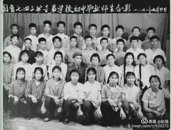 1971年7月工改兵整編前,國營七四三礦子弟學(xué)校最后一屆初中畢業(yè)班師生合影。