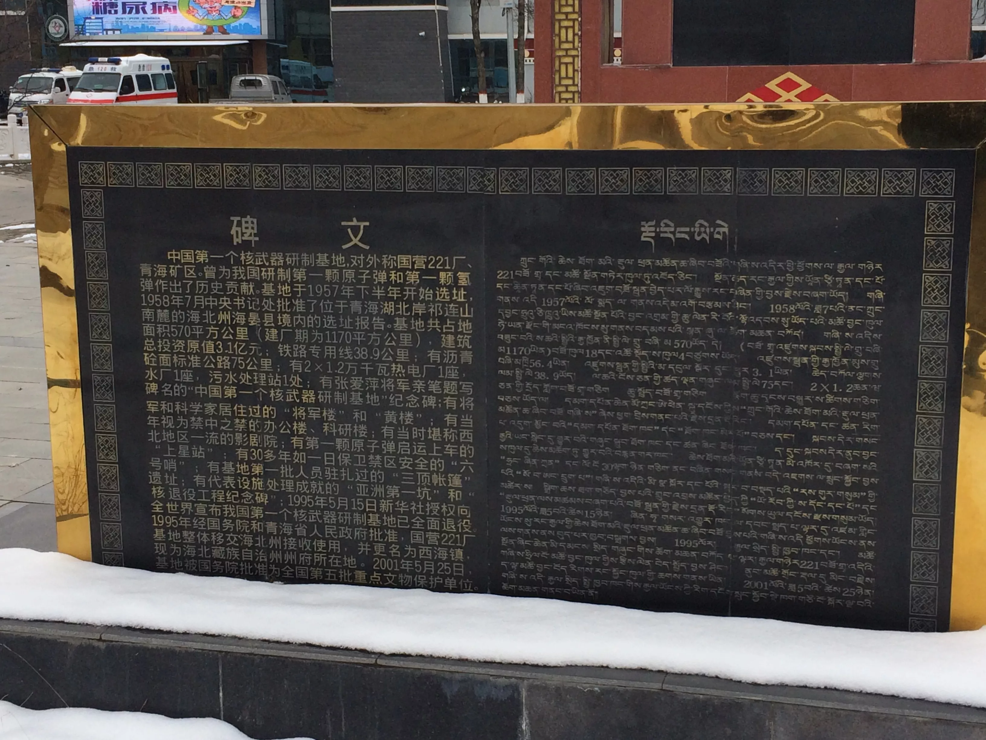 小石碑的后面,雙語刻制(右側(cè)為藏語)著原子城的簡介,系統(tǒng)的介紹了這里的情況。