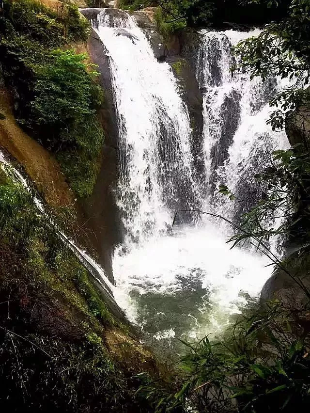 白水大瀑布:實為上、中、下白水三個瀑布,上白水落差36米,成三個深潭;中白水落差56米;下白水為枕型瀑布,落差近百米,氣勢磅礴,異常壯觀。