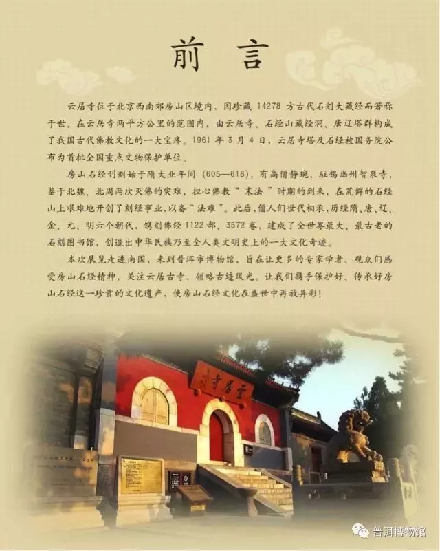 普洱市博物館9月24日喜迎北京房山云居寺歷史文化展 云居寺