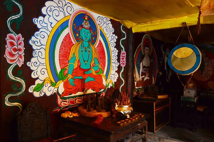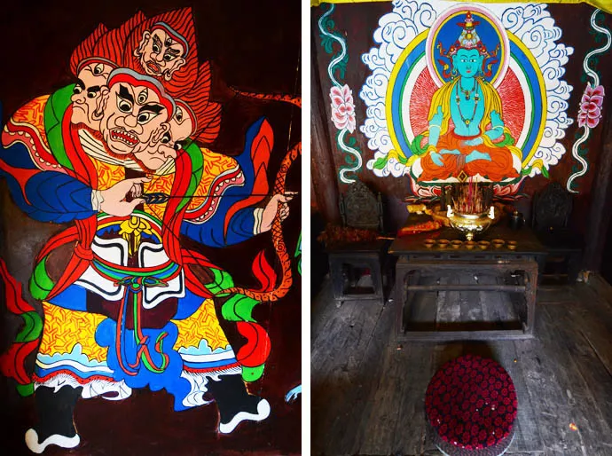 納西人不少信仰“藏傳佛教”,屋子里都會(huì)畫滿這樣的神靈圖像。