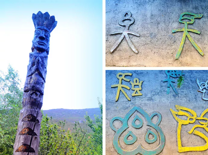 東巴立柱圖騰和東巴象形文字。