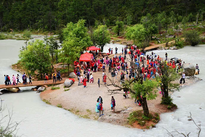 在玉龍雪山景區(qū)內(nèi),從云杉坪索道處往下步行幾百米便到了白水河,在河邊可以隨意搭乘小巴到大索道處,只需2元。一般游客在從麗江前往云杉坪的路上,會(huì)經(jīng)過白水河。