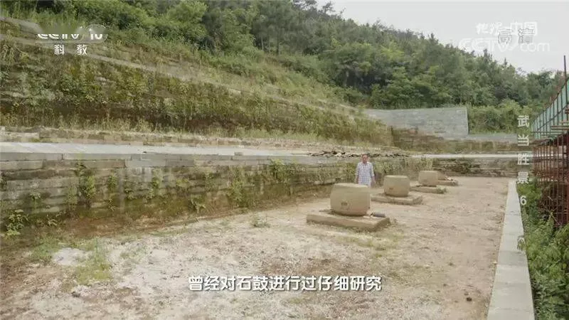 武當(dāng)山幾乎每一座宮觀,其主殿身后,都會設(shè)有一座小殿,因里面供奉著真武大帝的父母,而得名父母殿。原本的施工計劃,是在父母殿的遺址上,根據(jù)古人的規(guī)制進行重建。方案敲定后,施工也開始有條不紊地進行著。然而,就在工人們對父母殿遺址后方進行清淤工作時,卻在厚厚的泥土中,發(fā)現(xiàn)了四個巨大的石鼓。