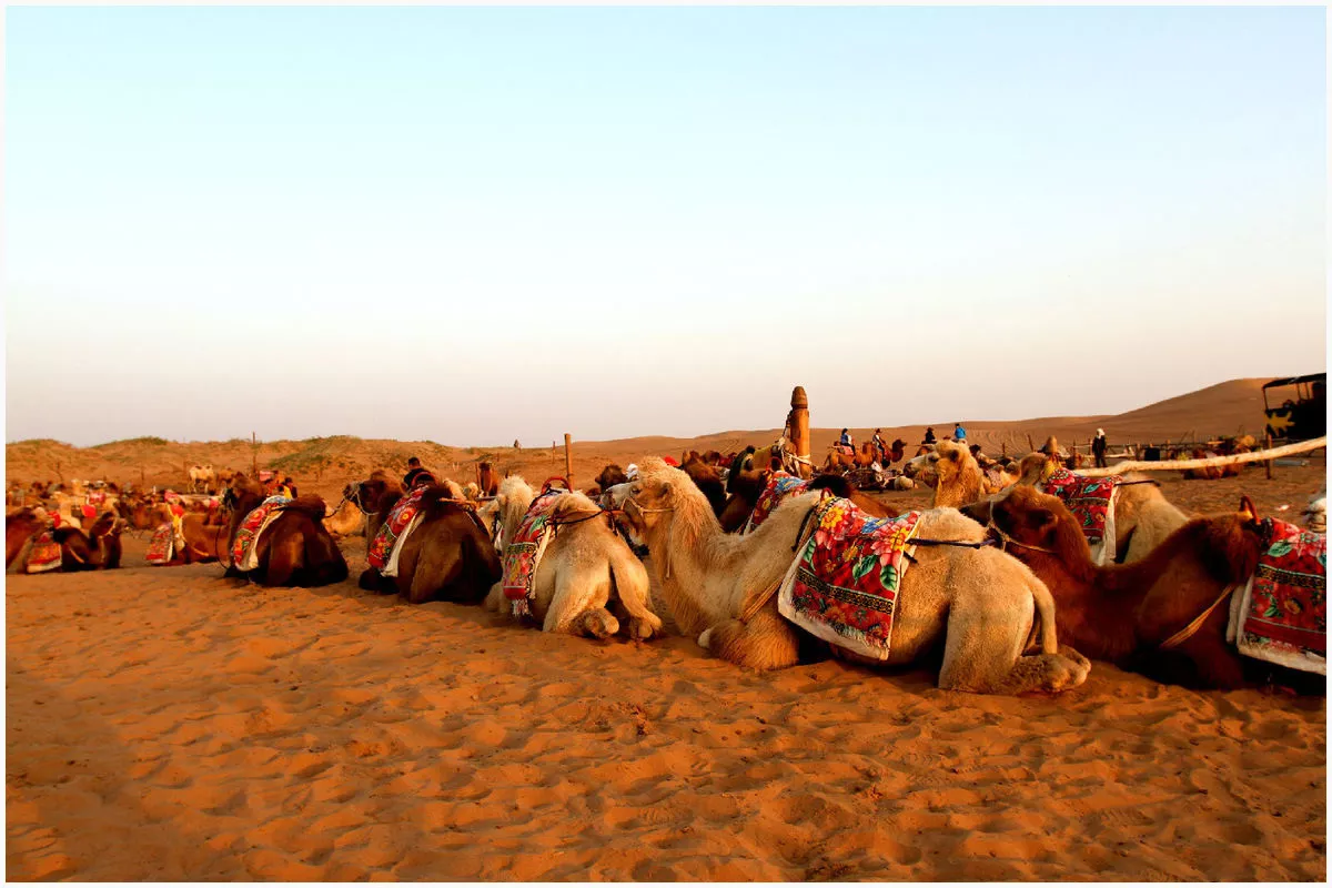門口有一大片蒙古包提供游客住宿,我們團(tuán)了套餐,騎駱駝,各種姿勢(shì),各種自拍,因?yàn)槭堑谝淮我姷竭@么大規(guī)模的沙漠,興奮地姿意地懶在沙灘上,隨地而坐,或躺或跳,觀天看沙,很有閑趣。
