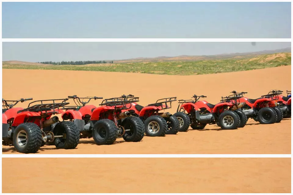 接著坐沖浪車,茫茫沙漠一個(gè)樣,根本無處尋找??此破教沟纳衬?,開起來,一個(gè)小山包都有意想不到的刺激效果。感覺只是緩緩地上了個(gè)小坡,眼看到頂了,前面沒路了,突然呼呼呼加速就沖了下去,心癢癢的,人都被慣性甩離了座位,一路只聽到此起彼伏興奮或驚嚇的尖叫,下車,滿嘴的沙。坐沙漠沖浪車建議一程坐前排(眼睛看得刺激),一程坐后排(身體顛得刺激),開到沙漠腹地,我們下車玩滑沙。工作人員讓我們爬上沙山去滑,好不容易進(jìn)三步退兩步地爬到山上,才被告知,要在山下?lián)尰嘲?,放眼望去,幾十?hào)人,沒幾塊板,而且因?yàn)闆]有排隊(duì)一說,放棄。