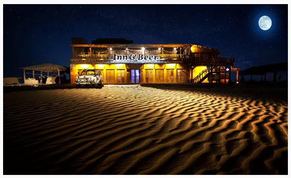 朋友發(fā)現(xiàn)有一個(gè)客棧,據(jù)說是《刺陵》拍攝地,就像個(gè)小酒吧,隨意瀏覽下我們就在蒙古包里休息喝奶茶,坐等晚上的篝火晚會(huì)。