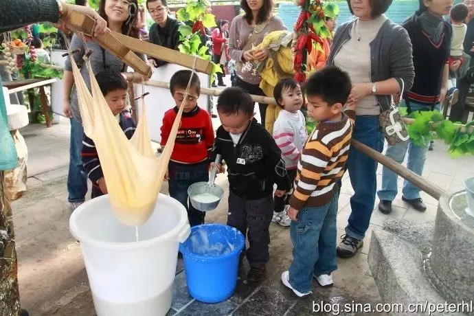 2、游客與孩子可以在工作人員的指導(dǎo)下親自動(dòng)手參與制作豆腐,體驗(yàn)生活樂(lè)趣。