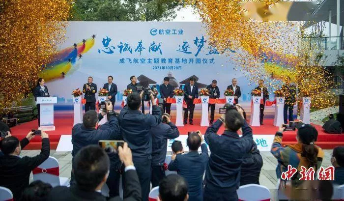 嘉賓們共同為園林式戰(zhàn)斗機(jī)博物館——成飛航空主題教育基地開園剪彩?!⒅铱?攝
