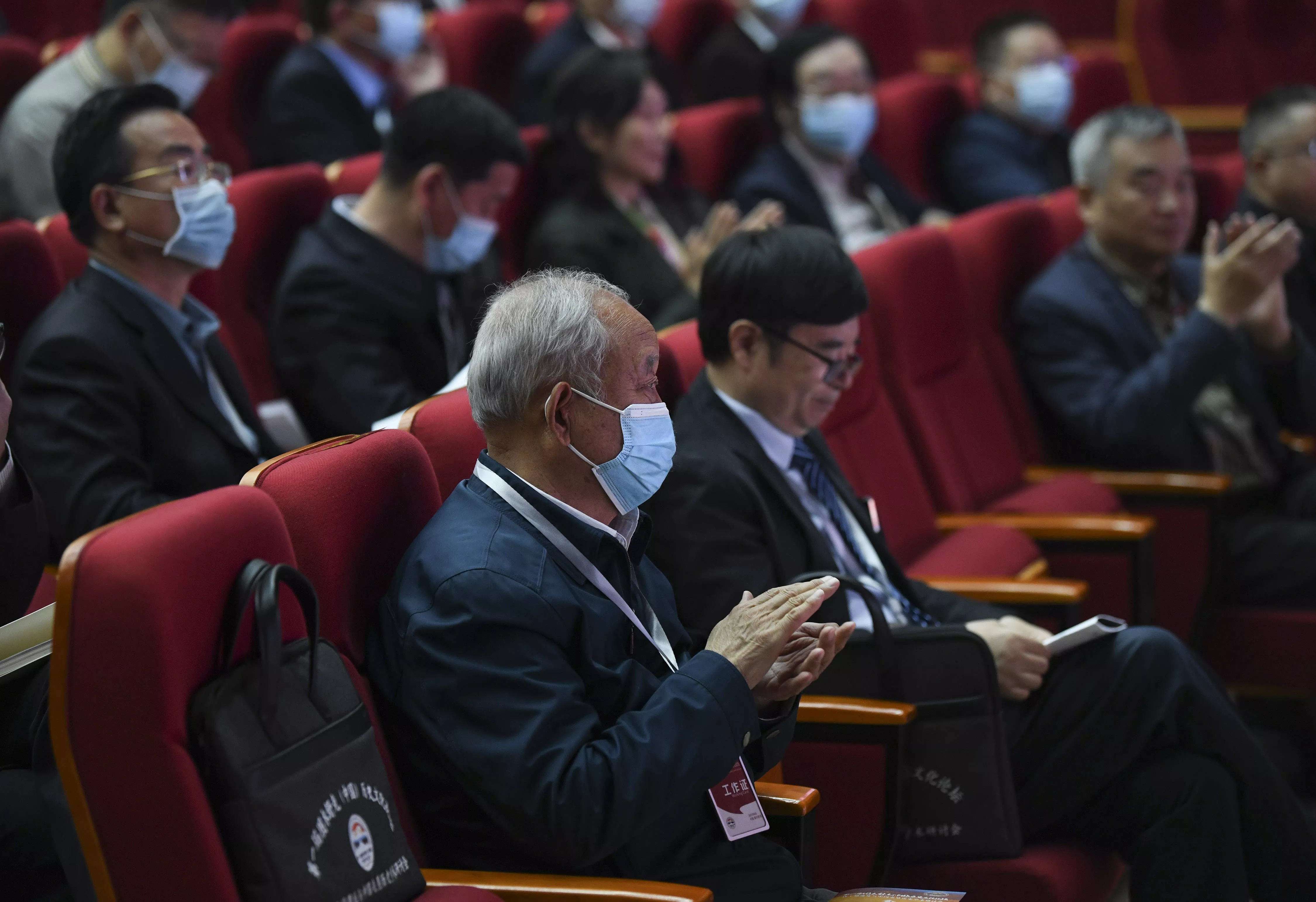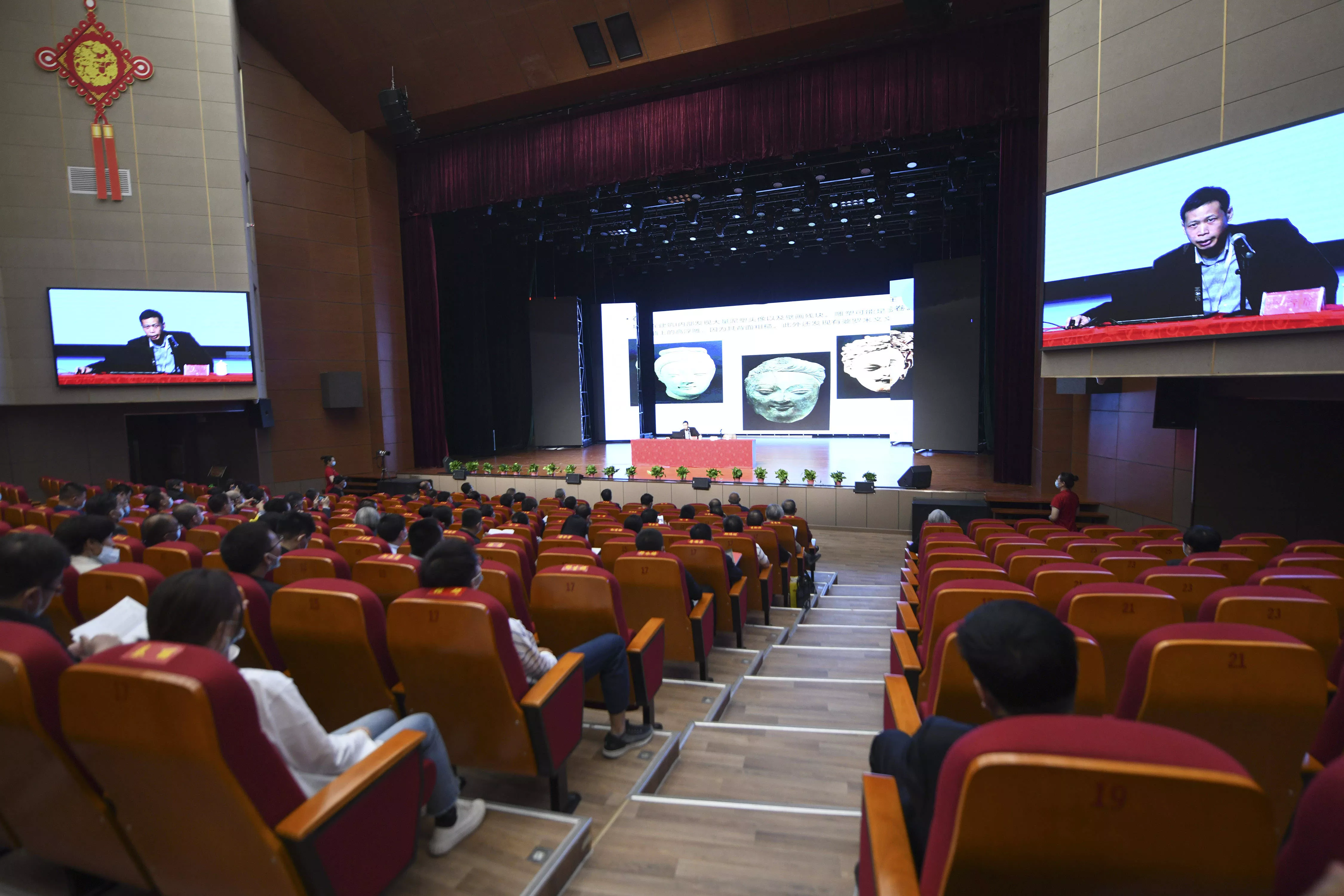考古學(xué)家們在研討會(huì)上聽取報(bào)告(4月28日攝)。