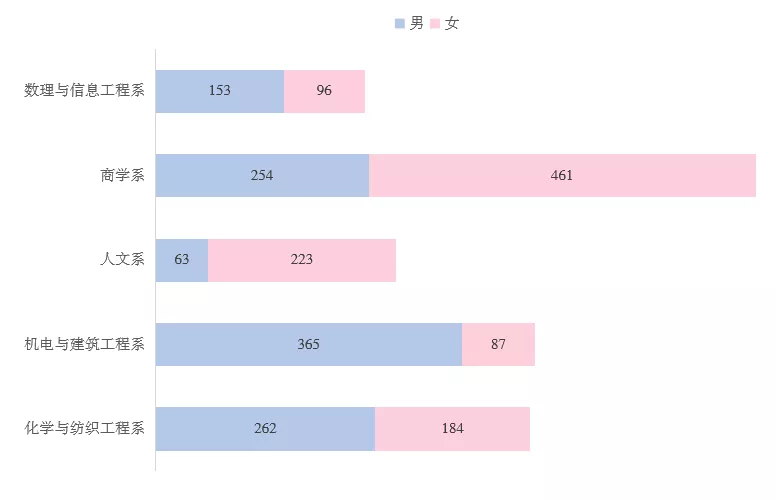 各院系人數(shù)概況及男女比例
