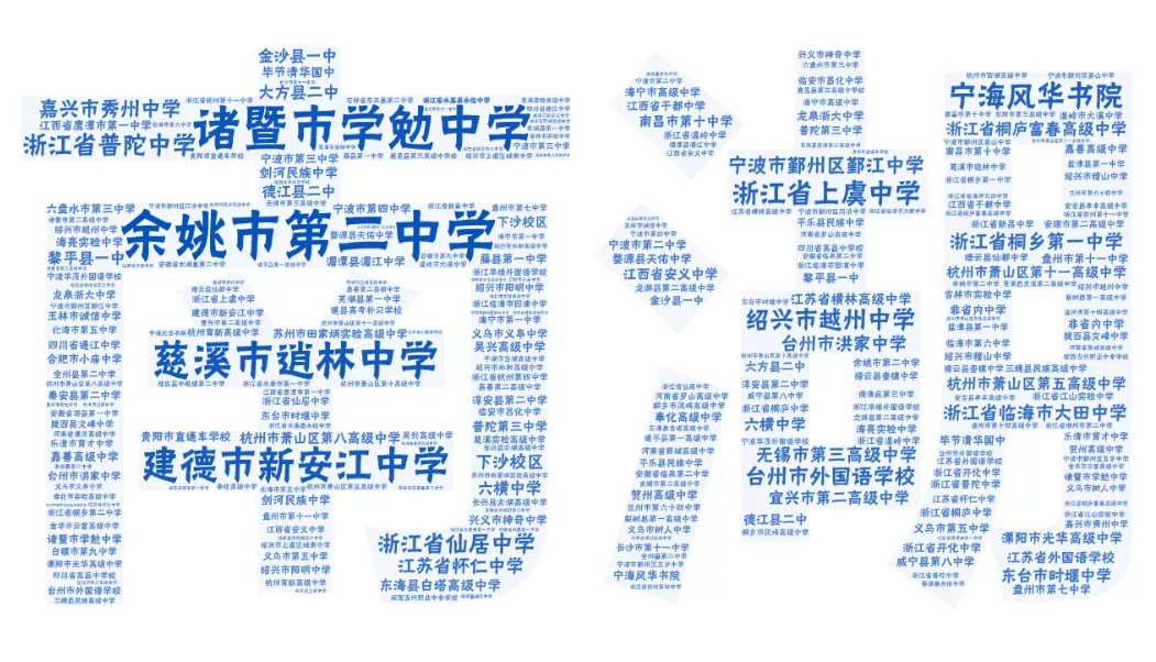 經(jīng)過(guò)統(tǒng)計(jì),我們發(fā)現(xiàn)來(lái)自浙江臨海市回浦中學(xué)的小萌新竟然有22位!海亮高級(jí)中學(xué)和杭州市蕭山區(qū)第五高級(jí)中學(xué)的小可愛(ài)也有15位,來(lái)自慈溪三山高級(jí)中學(xué)的有14位。真好,我們又能并肩作戰(zhàn)啦。