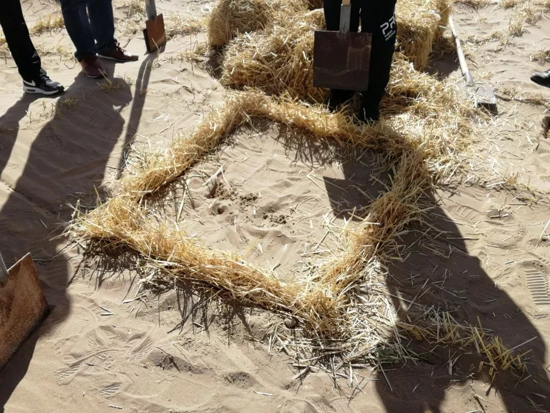 研究人員們在麥草方格內(nèi)