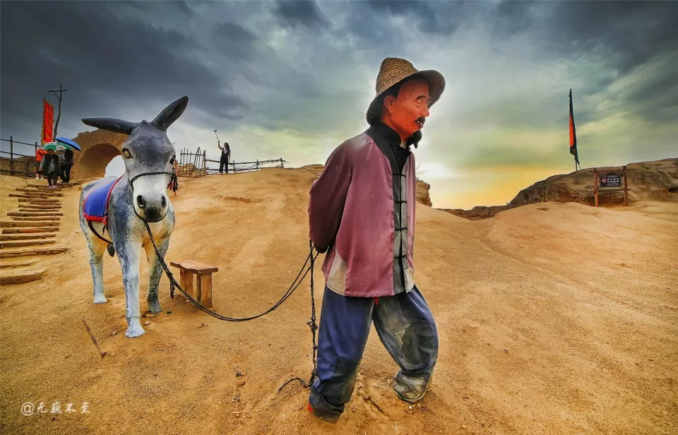 大名鼎鼎的國(guó)家5A景區(qū)鎮(zhèn)北堡西部影城距銀川市約35公里,走進(jìn)西部影城,滾涌的烏云已迫不及待地翻滾上場(chǎng)、用專(zhuān)業(yè)的精神持續(xù)跑著龍?zhí)诪橛慰秃嫱袣鈩?shì),頃刻間黃豆大的雨點(diǎn)在電閃雷鳴下傾瀉而來(lái),呵!果然是《大話(huà)西游》降妖伏魔的好所在!幸好景區(qū)內(nèi)的牛拉車(chē)、驢拉車(chē)還可以避雨,只不過(guò)萌萌噠的驢仔仔渾身淋透讓人很是過(guò)意不去!