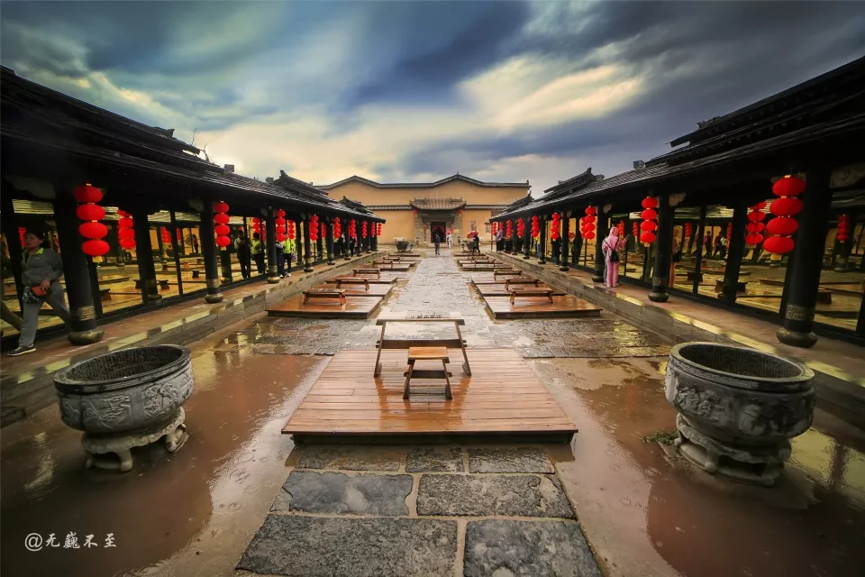 一直以來(lái)比較喜歡在雨中尋幽訪(fǎng)古,特別是在西北這種少雨干燥而蒼涼的環(huán)境中,行走在以民國(guó)建筑風(fēng)格建造的場(chǎng)景中,宛如穿越回戰(zhàn)火紛飛的青蚨鎮(zhèn),烏云壓頂、氣氛凝重,黃土蒼天,悠悠賀蘭,讓人倍感蒼涼、悲愴!