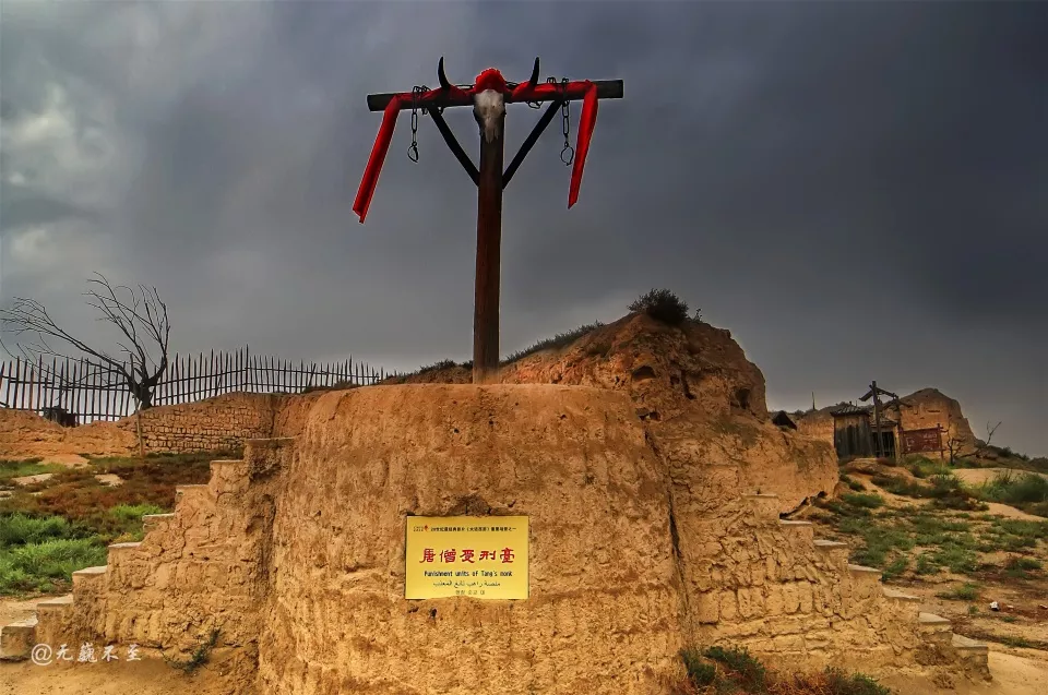 除了《紅高粱》等經(jīng)典作品的誕生,九十年代火遍大江南北的香港喜劇明星周星馳主演的《大話(huà)西游》也將鎮(zhèn)北堡作為主要外景拍攝地,看到這唐僧受刑臺(tái),大家都不禁莞爾,會(huì)心一笑,唐僧飾演者羅家英的經(jīng)典名句便在耳畔縈繞:所以說(shuō)做人就像做妖一樣,要有一顆仁慈的心。有了仁慈的心,妖就不再是妖,而是人妖!人和妖精都是媽生的,不同的人是人他媽生的,妖是妖他媽生的,你媽貴姓?