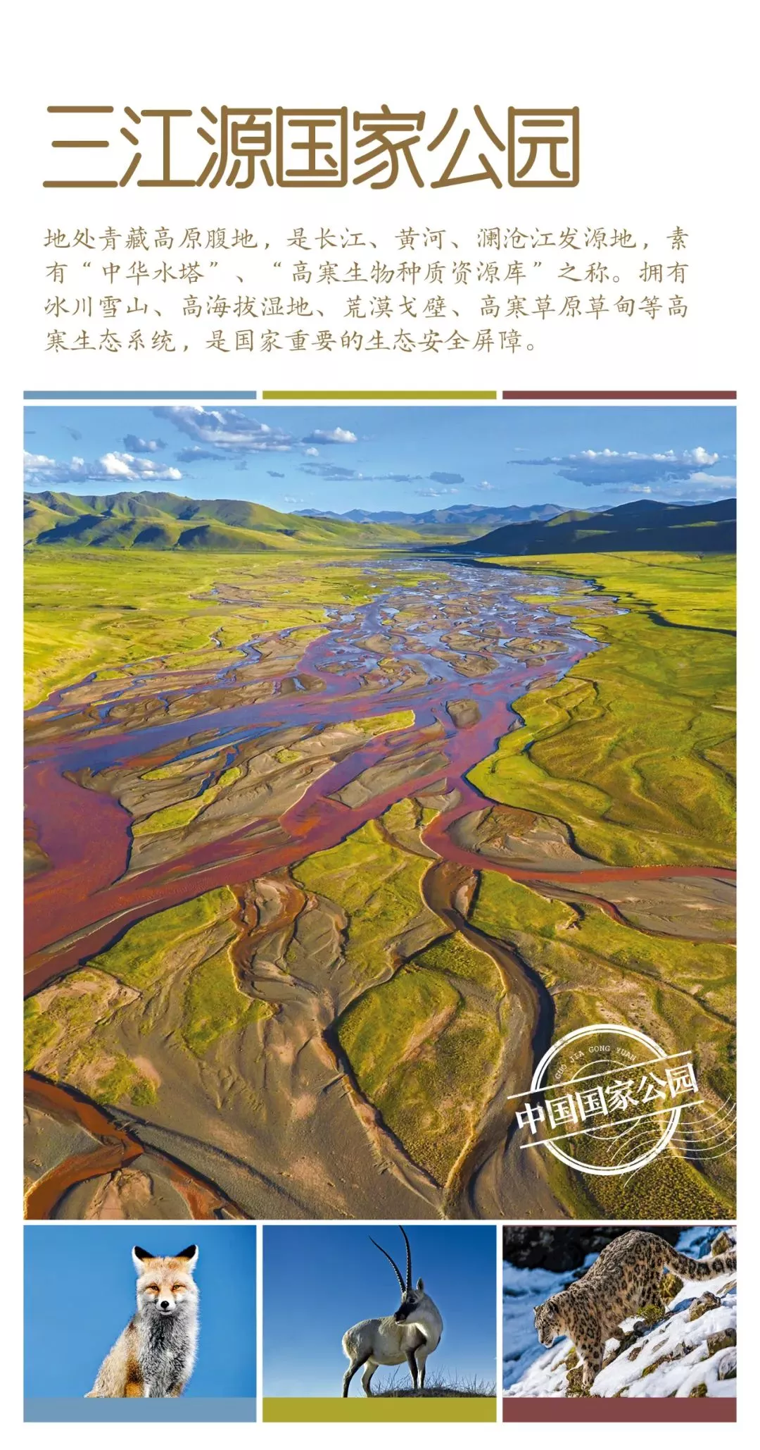 三江源國家公園將長江源、黃河源、瀾滄江源整體劃入公園范圍,實(shí)現(xiàn)三江源頭區(qū)域的完整性保護(hù),3個(gè)園區(qū)各具特色。