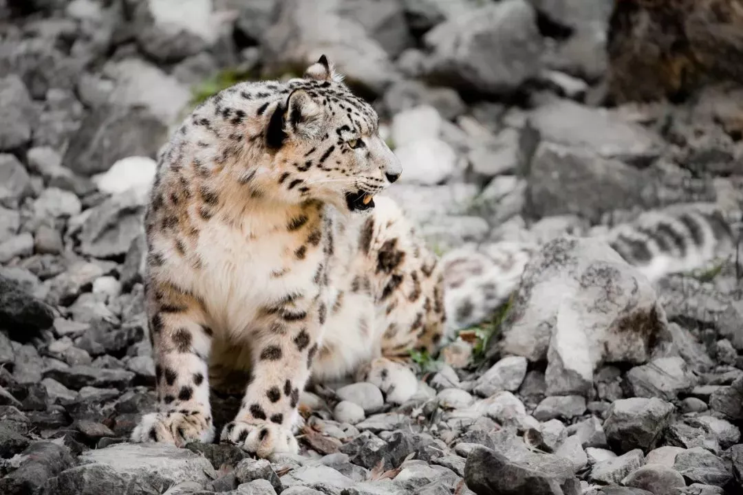 坐在巖石間的雪豹
