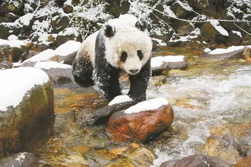 雪中的大熊貓 圖/國家林業(yè)和草原局政府網(wǎng) 攝影/胡萬新