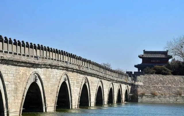 盧溝橋,亦稱蘆溝橋,在北京市西南約15公里處,豐臺區(qū)永定河上是北京市現(xiàn)存最古老的石造聯(lián)拱橋,也是華北最長的古代石橋。在《馬可·波羅游記》中它被形容為一座巨麗的石橋,后來外國人都稱它為"馬可波羅橋"。
