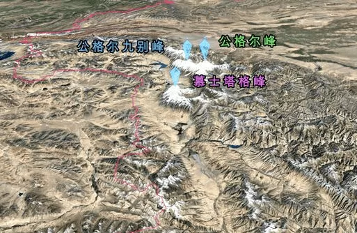 昆侖山脈的冰川雪峰,主要集中在西端部分,最高峰公格爾峰位于新疆境內的阿克陶縣,海拔高度約為7649米,在公格爾峰的附近還分別矗立著第二峰公格爾九別峰,以及第三峰慕士塔格峰。