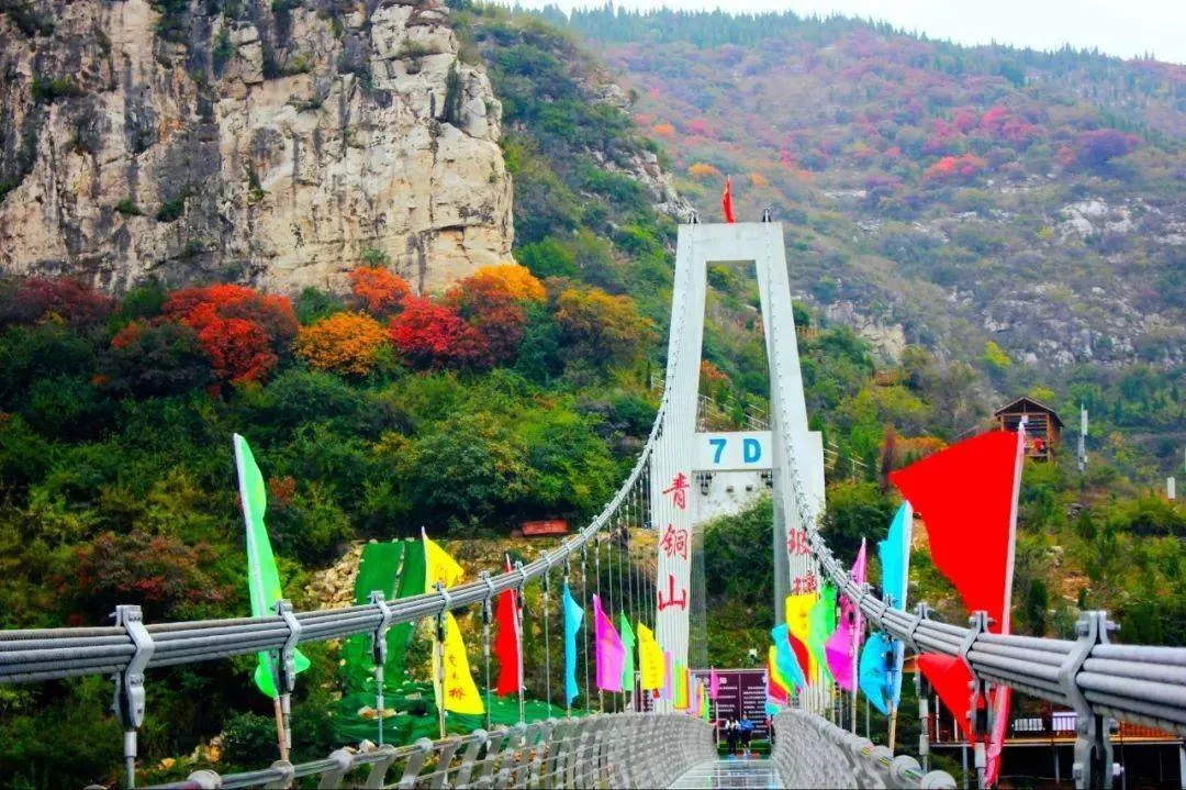 望著全長356米、垂直高度為130米的高空7D玻璃橋,上去更加讓人神往,漫山紅葉正開時,青銅山大峽谷玻璃橋就是你的最佳觀景區(qū)。