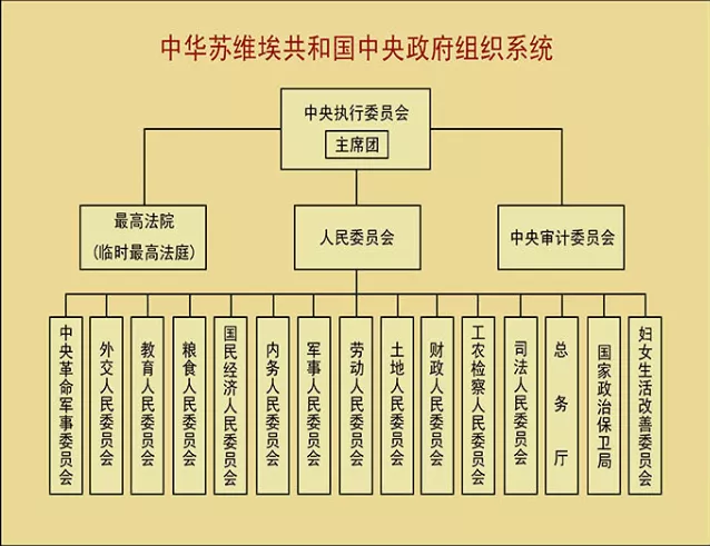 根據(jù)憲法大綱的規(guī)定,11月27日,中央執(zhí)行委員會舉行第一次會議,選舉毛澤東為中央執(zhí)行委員會主席,項英、張國燾(一直沒有到中央根據(jù)地任職)為副主席。會議還選舉毛澤東任人民委員會主席,項英、張國燾任副主席,決定中華蘇維埃共和國臨時中央政府設(shè)在江西瑞金。
