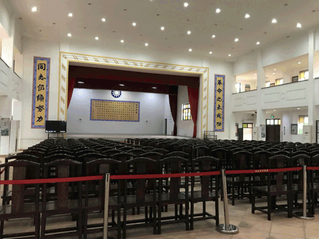 ▲紀(jì)念堂內(nèi)部大廳為劇院設(shè)計(jì),有放映室、舞臺(tái)、化妝間和觀眾席。舞臺(tái)兩端手書(shū)“革命尚未成功,同志仍須努力”十二個(gè)大字,為2009年大維修時(shí),由書(shū)法家臨摹孫中山真跡后,再采用雕塑技術(shù)雕刻。