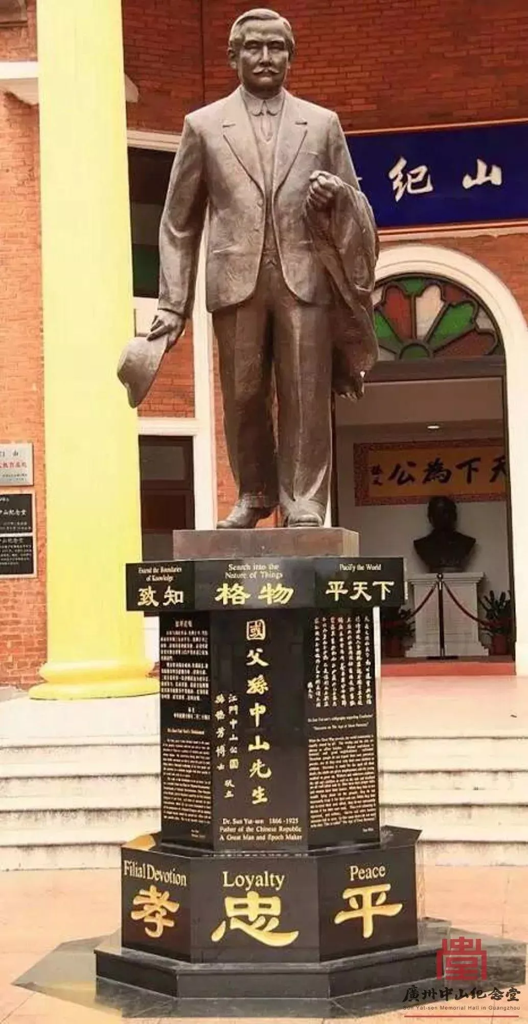 中山紀(jì)念堂于1929年1月動(dòng)工,1931年11月建成。1956年,重鑄的高5米的孫中山先生銅像屹立在紀(jì)念堂前。
