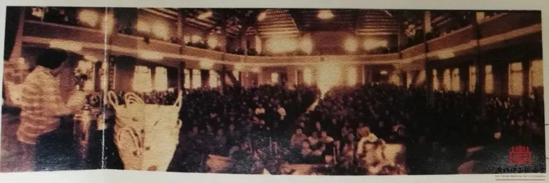 ▲1950—1966年為江門(mén)市政府會(huì)場(chǎng),其中1950年9月江門(mén)市第一屆人民代表大會(huì)在此召開(kāi)。圖為紀(jì)念堂開(kāi)會(huì)舊影。