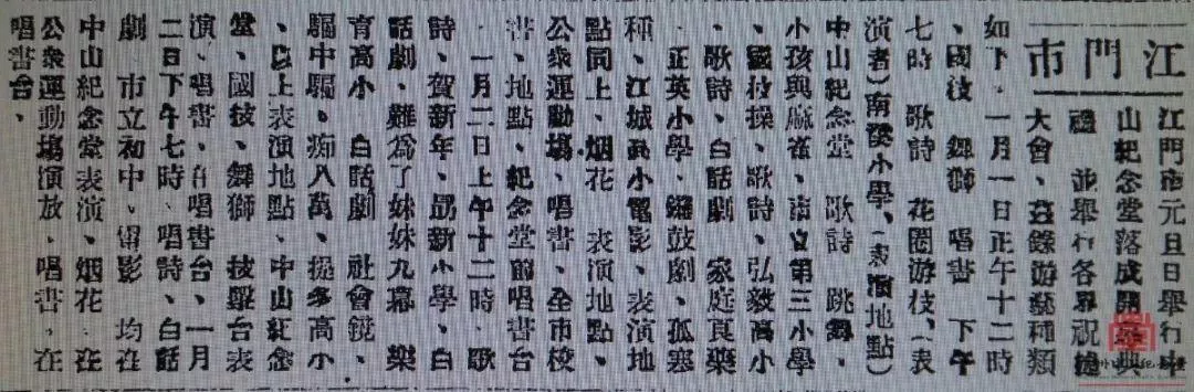 ▲1930年1月1日,江門(mén)市舉行中山紀(jì)念堂落成典禮及各界祝捷大會(huì)。圖為《廣州民國(guó)日?qǐng)?bào)》當(dāng)天的報(bào)道。