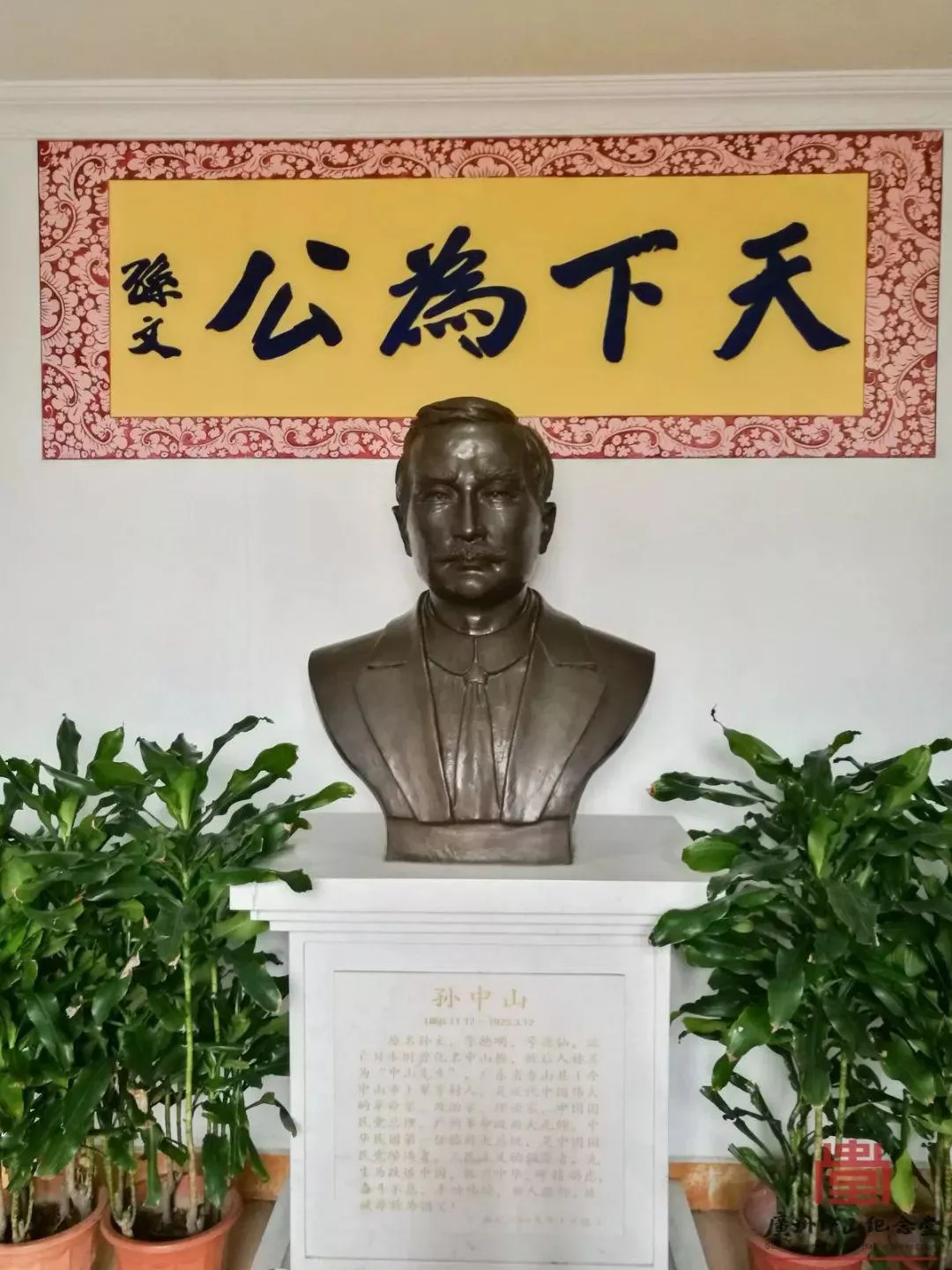 ▲紀(jì)念堂正門(mén)入口處有一尊孫中山半身銅像,為2009年大維修時(shí)新增。