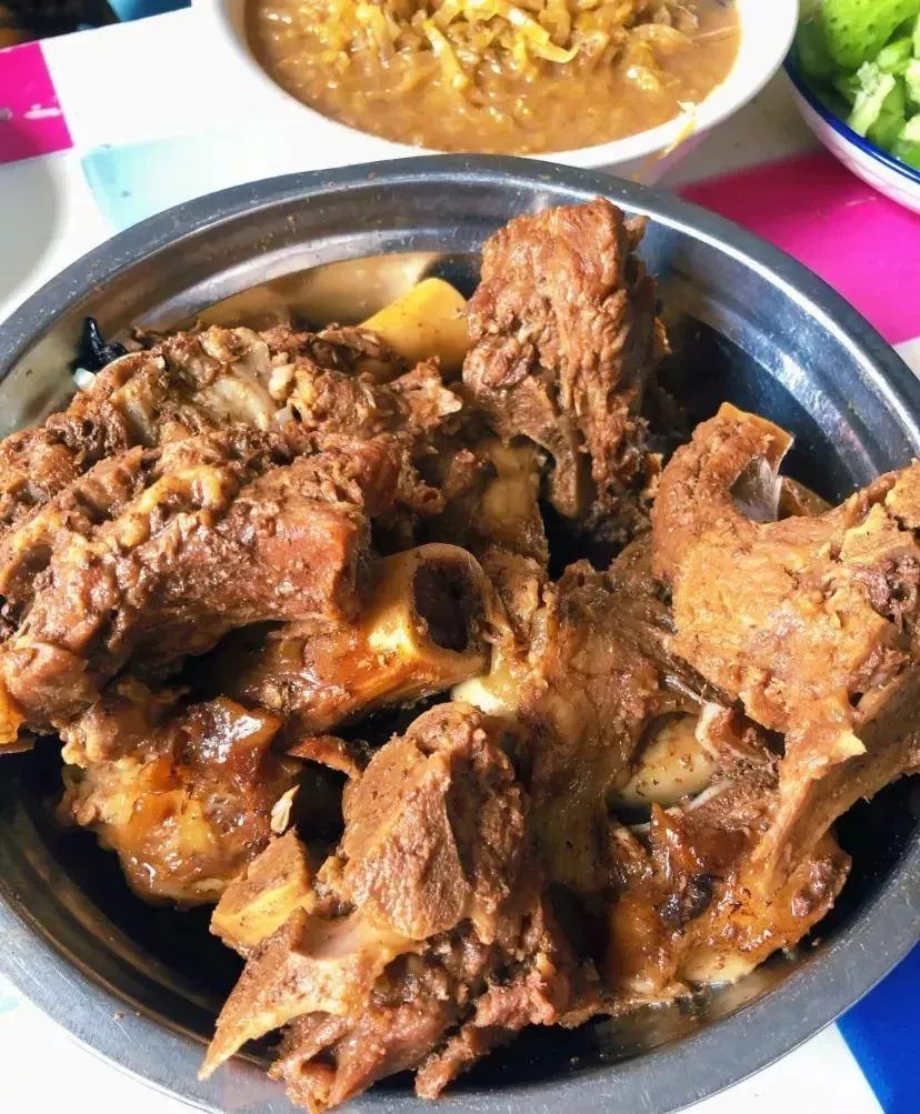 骨頭肉醬的很有味兒,肉和筋附著在骨頭上,有肥有瘦,醬香四溢,輕輕一嘬就能骨肉分離。