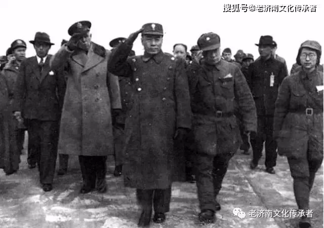 1946年3月2日周恩來視察濟(jì)南“軍調(diào)處” 為了解各地執(zhí)行停戰(zhàn)協(xié)定和解決國共軍隊(duì)整編工作中的問題,周恩來作為軍事三人小組成員,同張治中、馬歇爾一起經(jīng)北平飛往張家口、濟(jì)南、徐州、太原、歸綏、延安武漢等地視察。這是3月2日軍事三人小組到達(dá)濟(jì)南時(shí)在機(jī)場的合影。前右二起:陳毅、周恩來、馬歇爾。