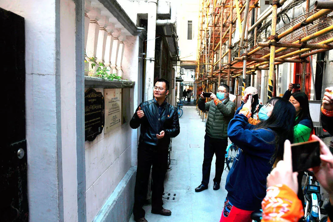 站在永安里44號(hào)門前,孜乃提有些“穿越”:不久前,她讀過一本《周恩來傳》,書中就提到了這個(gè)周恩來夫婦曾經(jīng)避難的地方。今年是周恩來誕辰124周年,今天,一場名為“追尋周恩來在虹口印跡”為主題城市考古活動(dòng)舉行,孜乃提和十余位“考古隊(duì)員”跟著虹口區(qū)委黨校教師潘秦保一路“騎游”,追尋偉人足跡,沉浸式體驗(yàn)虹口區(qū)豐富的紅色文化資源