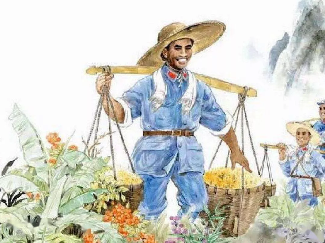 1928年,朱德同志帶領(lǐng)一支紅軍隊(duì)伍到井岡山跟毛主席會(huì)師。山上是紅軍,山下不遠(yuǎn)就是敵人。井岡山上出產(chǎn)糧食不多,常常要抽出一些人到山下的茅坪去挑糧。從井岡山到茅坪,來回有五六十里,山高路陡,非常難走??墒敲看翁艏Z大家都爭著去。朱德同志也跟戰(zhàn)士們一塊兒去挑糧。他穿著草鞋,戴著斗笠,挑起滿滿的一擔(dān)糧食,跟大家一塊兒爬山。白天挑糧,晚上還常常整夜整夜地研究怎樣跟敵人打仗。大家看了心疼,就把他那根扁擔(dān)藏了起來。不料朱德同志又找來了一根扁擔(dān),寫上“朱德扁擔(dān)不準(zhǔn)亂拿”八個(gè)大字。大家見了,越發(fā)敬愛朱德同志,不好意思再藏他的扁擔(dān)了。