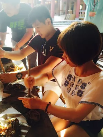 玩兒累了可以去客家莊文物館參觀一下,這里是全臺(tái)灣最大客家甕墻,由1172個(gè)陶甕堆砌而成;三合院建筑,館內(nèi)展出珍貴客家文物,生活、服飾、器具、農(nóng)具四大主題,體會(huì)先民智慧,喚起思古情懷。長廊為稻米時(shí)光廊,陳列客家稻米文化,互動(dòng)學(xué)習(xí)DIY,寓教于樂。在客家擂茶、搗麻糬體驗(yàn)、擠福菜體驗(yàn)當(dāng)中,大家玩兒的不亦樂乎。